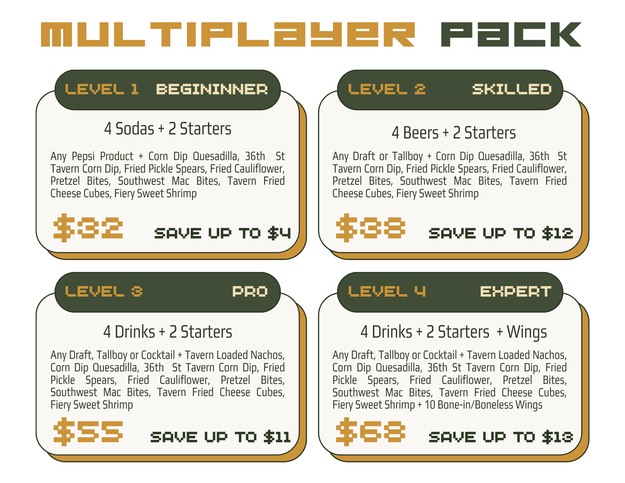Game Night Menu specials available at 6pm